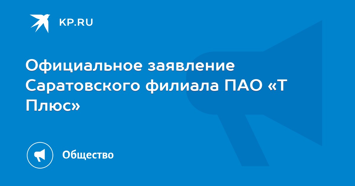 Официальное заявление Саратовского филиала ПАО «Т Плюс».