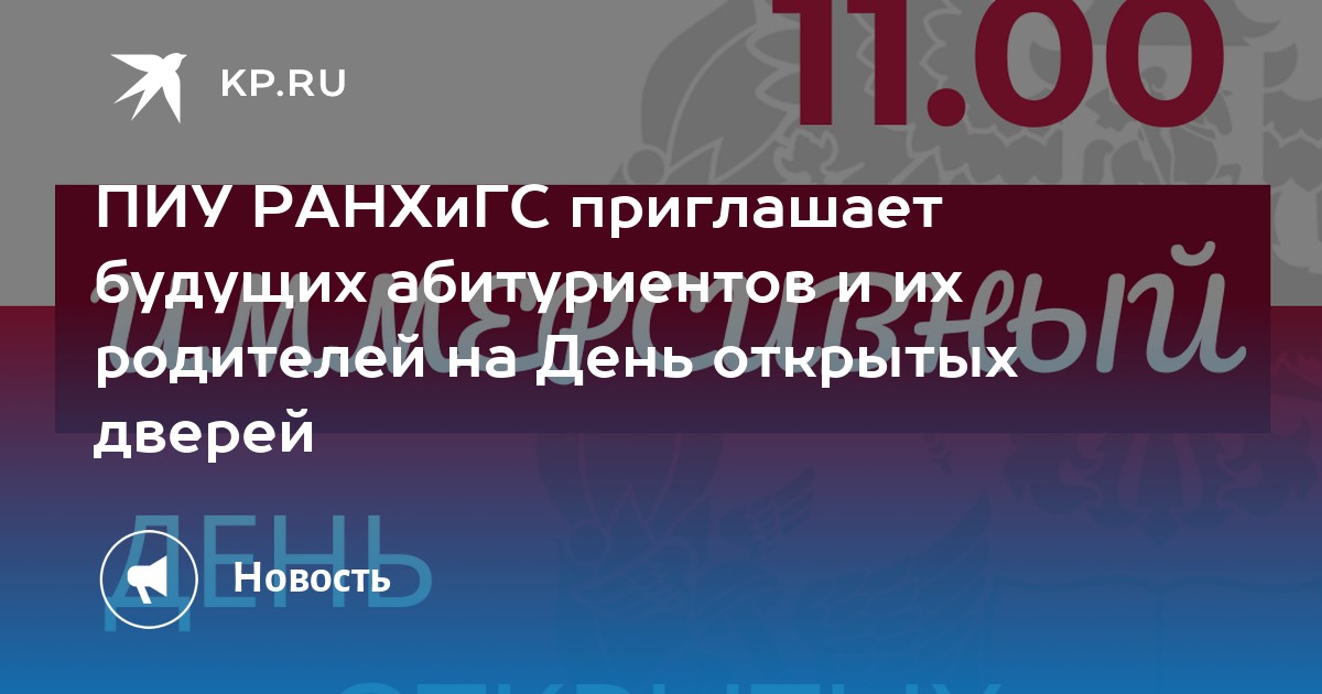 Зарегистрироваться на День открытых дверей Вы можете на официальном сайте ПИУ РАНХиГС. Реклама. ИНН 7729050901
